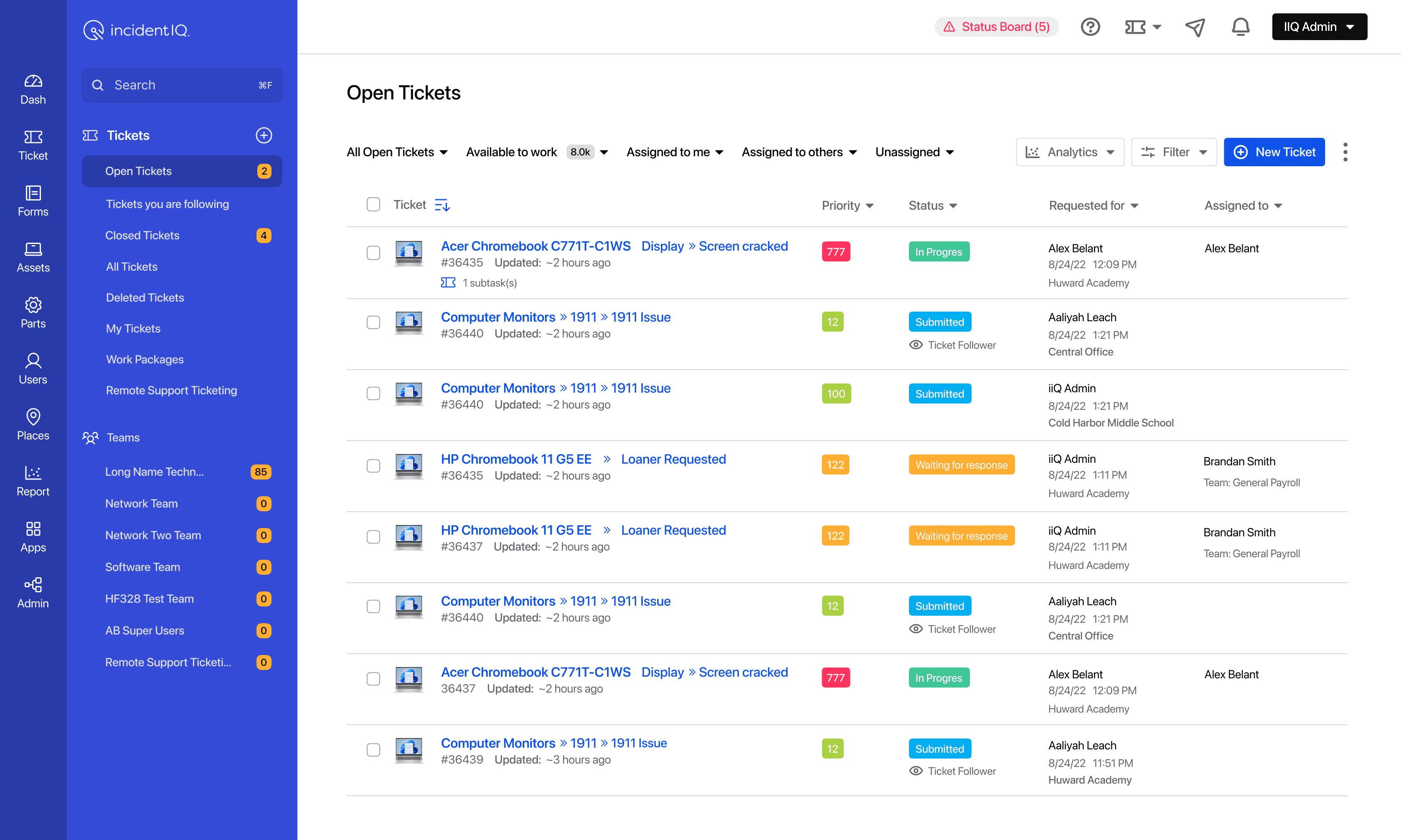 Incident IQ powers the infrastructure behind everyday K–12 operations. The platform connects help desks, devices, facilities, and HR workflows across districts serving millions of students.