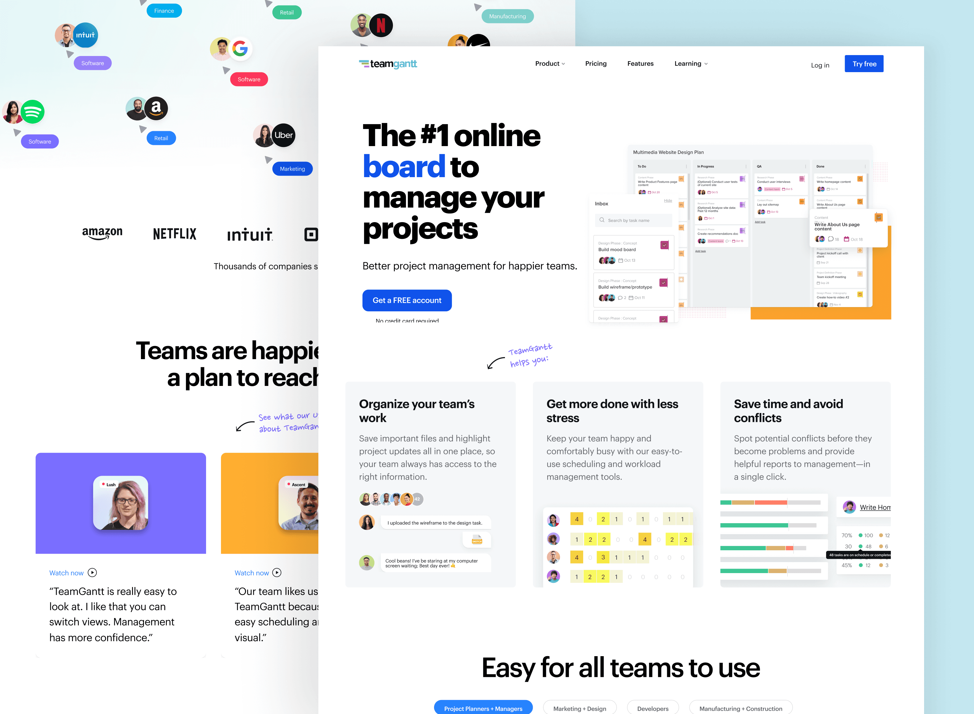 TeamGantt reshaped how teams planned, tracked, and delivered work. What started as a simple Gantt chart tool became an intuitive visual planning platform for over one million users. By grounding design in clarity and consistency, teams could spend less time wrestling with tools and more time collaborating. As a result, projects that once took weeks could be launched in just days, empowering teams to achieve their goals faster and with greater satisfaction.