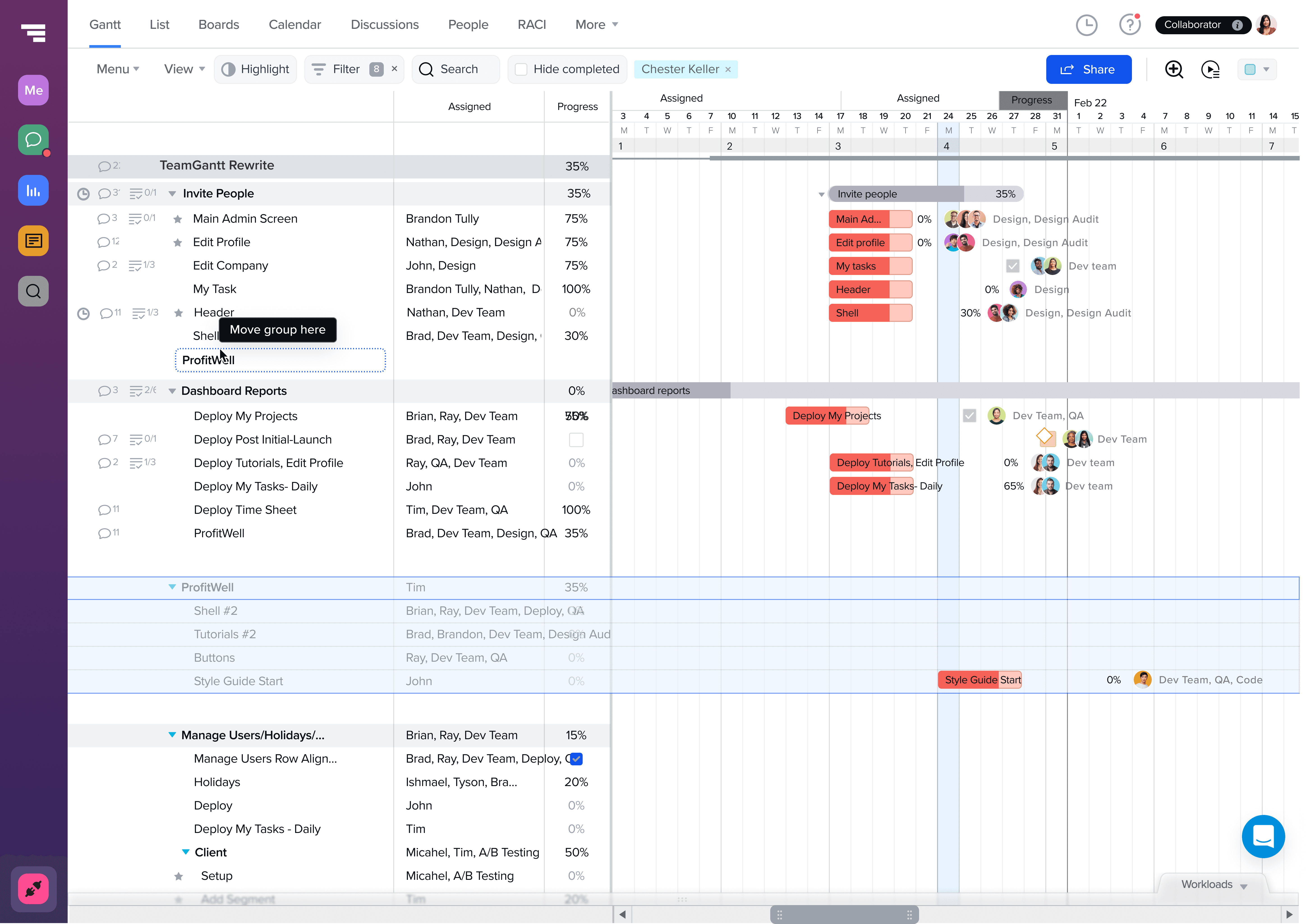 TeamGantt’s core value is visual planning. Users expect direct manipulation: drag a task, see it move.